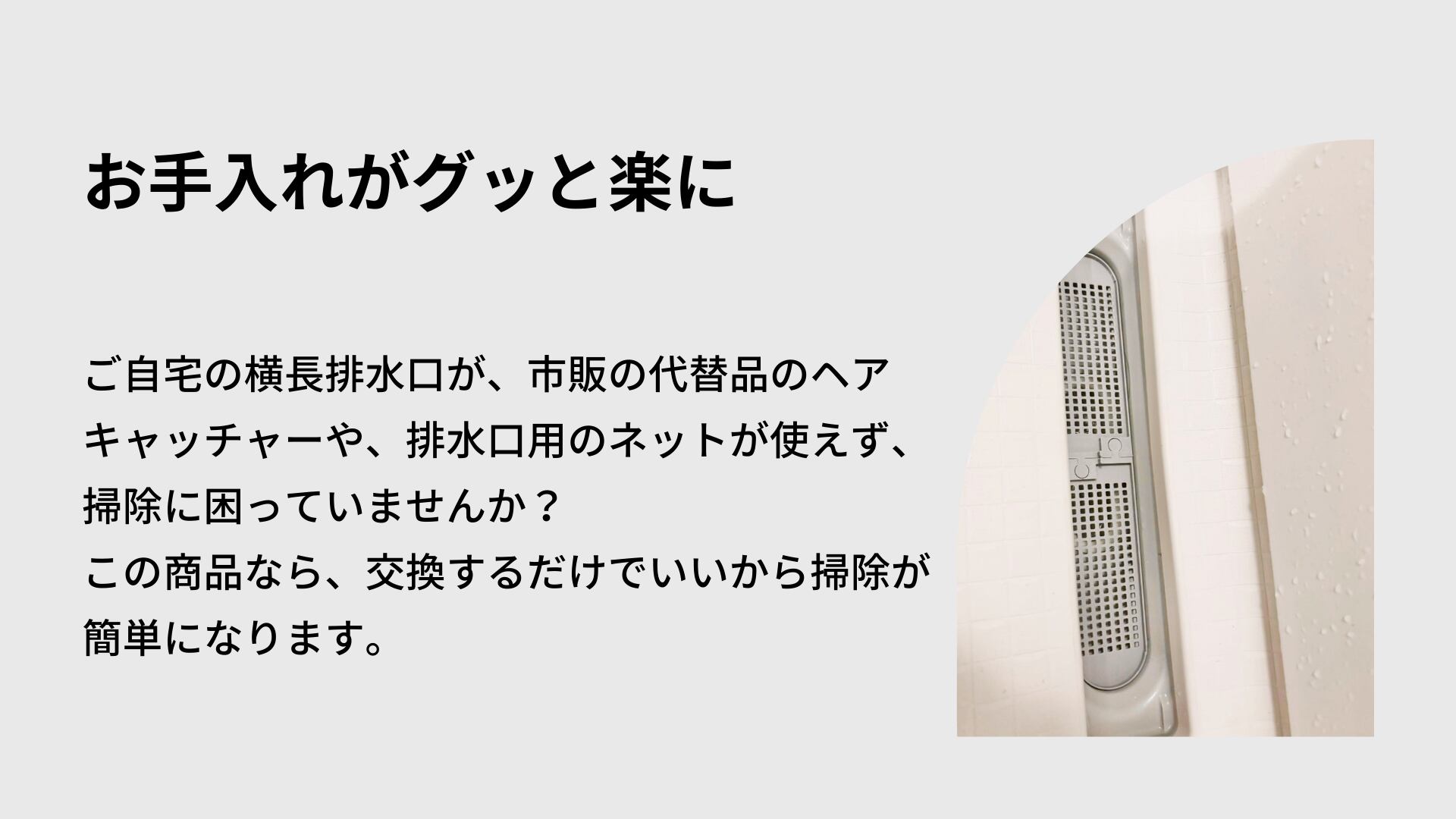 本製品は、セキスイハウスの浴室「らくり〜ん排水口」、シャーメゾン物件に多く採用されている「スリムトラップタイプ」に対応しています。