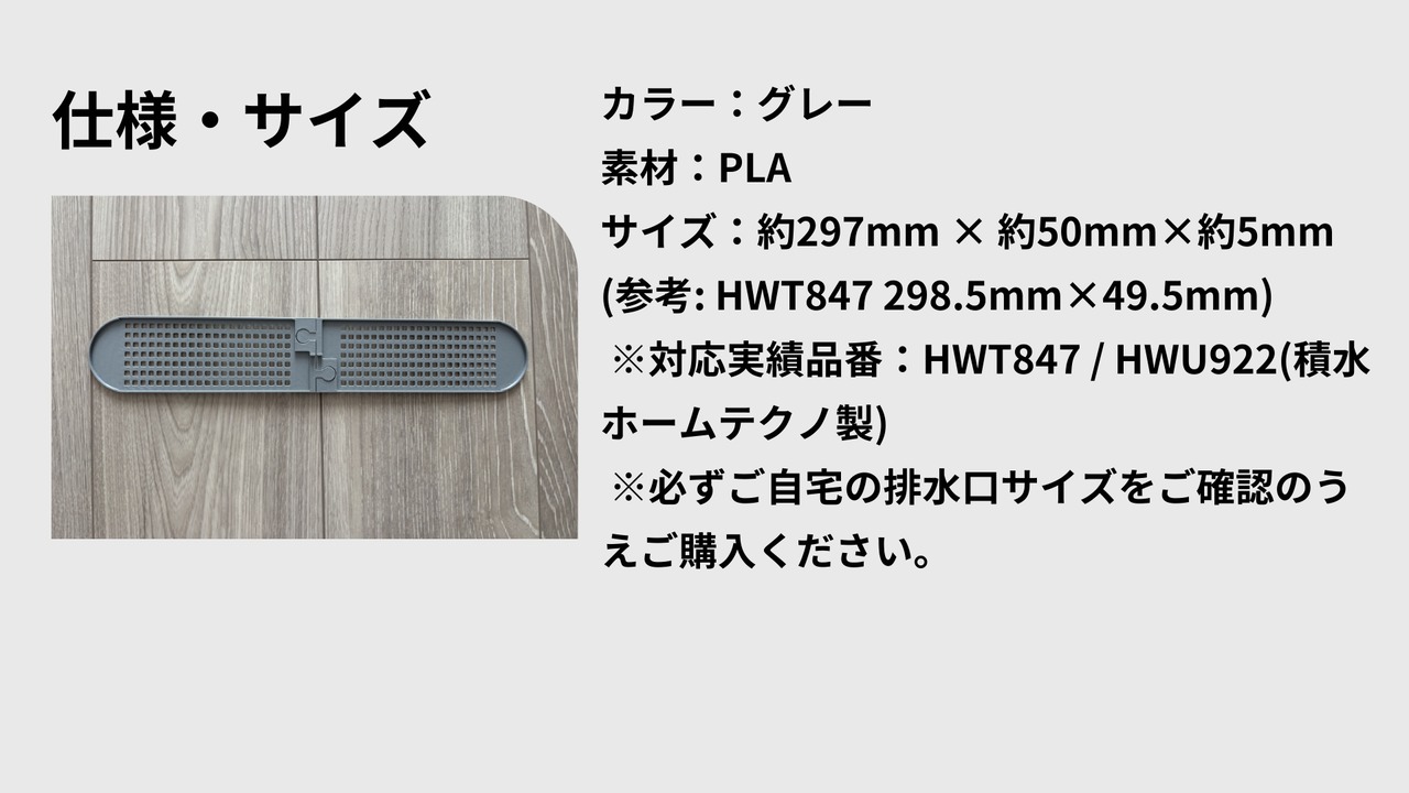 本製品は、セキスイハウスの浴室「らくり〜ん排水口」、シャーメゾン物件に多く採用されている「スリムトラップタイプ」に対応しています。